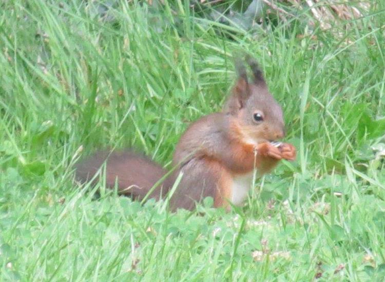 Red squirrels visit our wooded area on occasions.